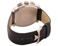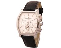 Механизм: кварцевый 5 камней. Функции: часы, минуты, хронограф, маленькая секундная стрелка . Корпус: стальной, полированный, с IPG напылением - белое золото 18 ct, из трех частей, размеры: 28 х 38 мм, высота 9 мм, выпуклое сапфировое стекло; установочная кнопка для регулирования даты на боковой части корпуса, задняя крышка корпуса на винтах. Циферблат: посеребренный, гильошированный, накладные метки цифры, стрелки "листок". Кожаный ремешок, классическая застежка.